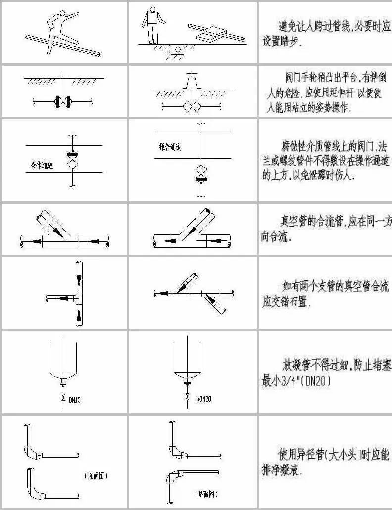 計中經(jīng)常由于設計人員的疏忽及經(jīng)驗不足,會造成管道布置不合理,操作檢修不便,外表不美觀的情況。為提高設計質量,減少常識性錯誤的發(fā)生,本文為大家整理了配管設計中這些最常見的實例!