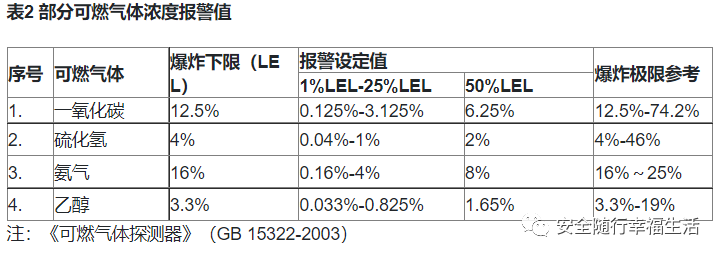常見可燃、毒性氣體量程及報(bào)警值設(shè)定