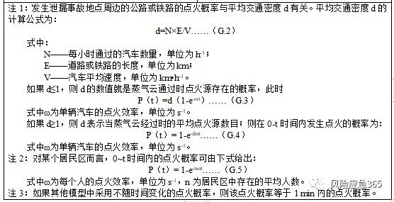 注1:對(duì)于可燃液體釋放,在到達(dá)地面前可能發(fā)生物質(zhì)的蒸發(fā)。如果蒸發(fā)氣立即點(diǎn)火將形成噴射火。噴射火的物質(zhì)量取決于蒸發(fā)氣中的物質(zhì)量。注2:在延遲點(diǎn)火時(shí),除了閃火或爆炸,也將發(fā)生池火。