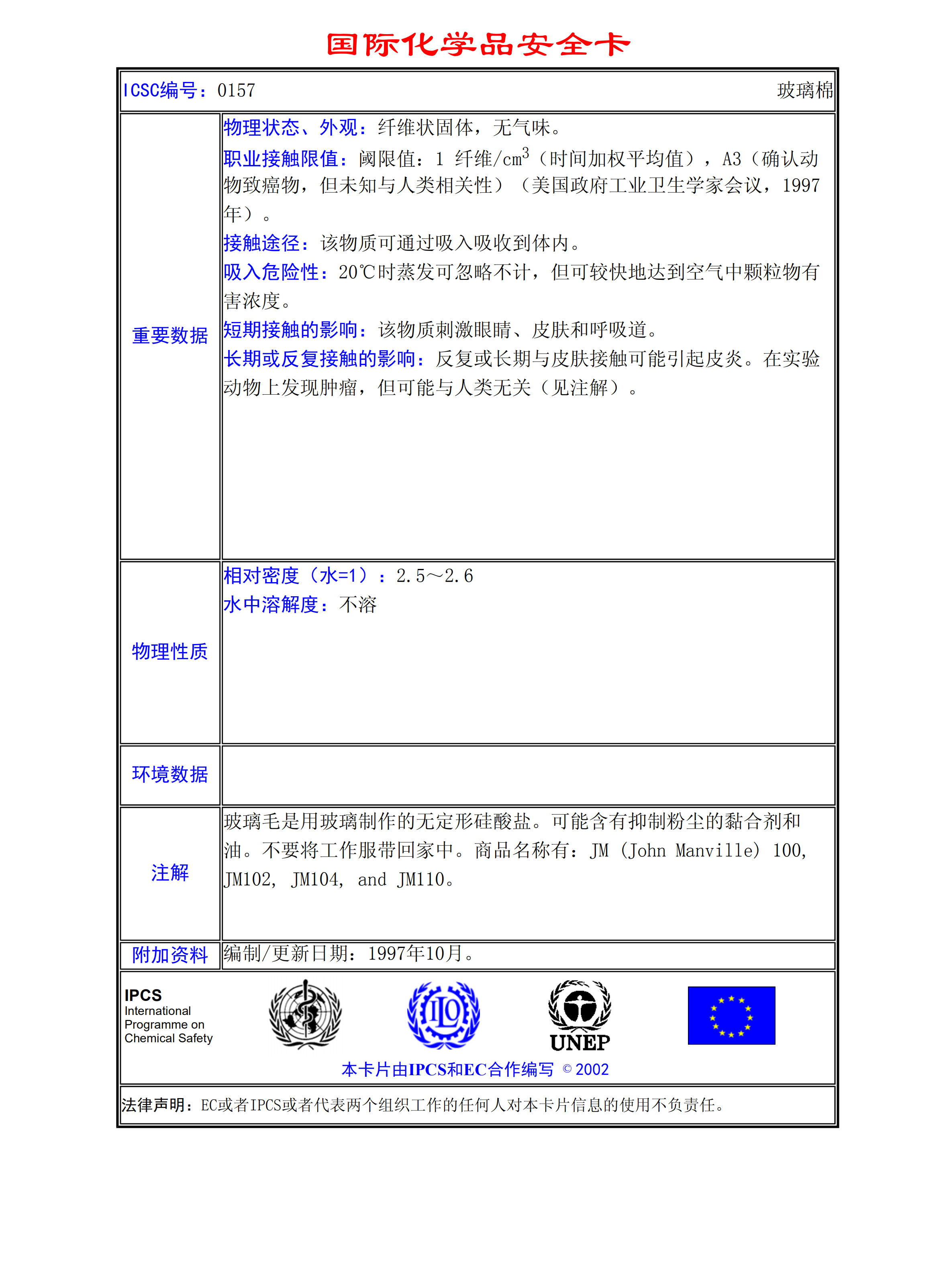 玻璃棉MSDS