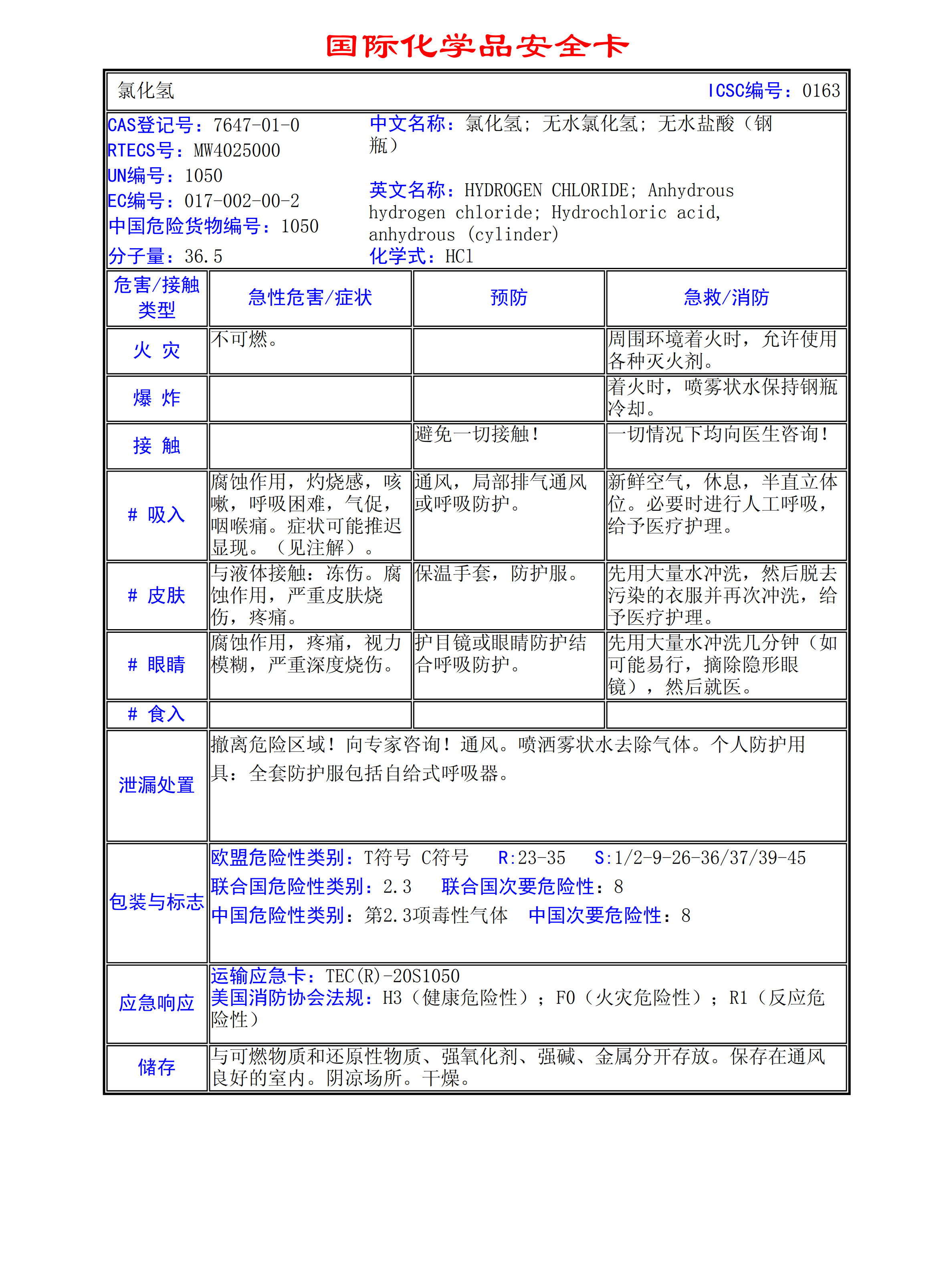 氯化氫MSDS