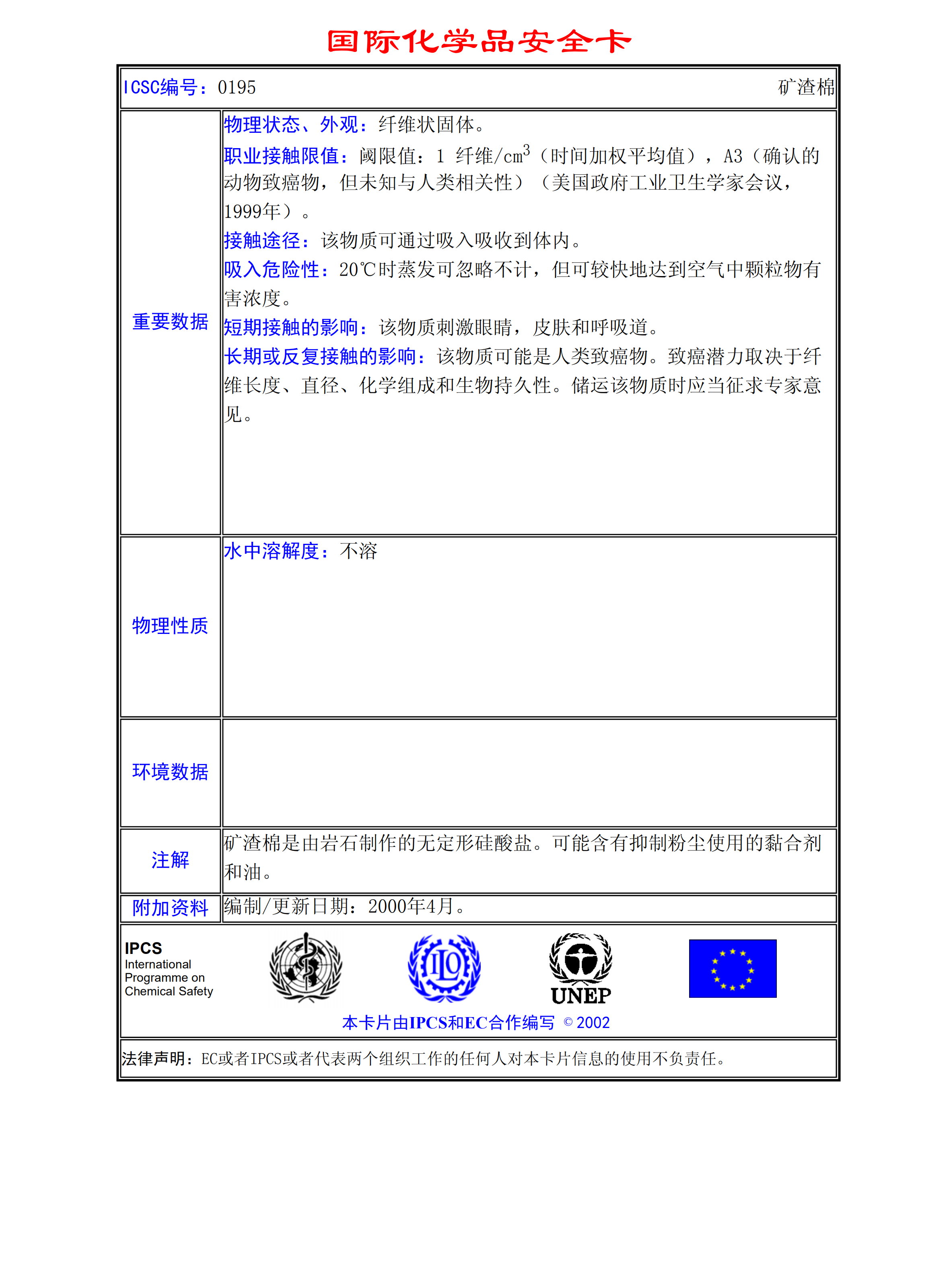 礦渣棉MSDS
