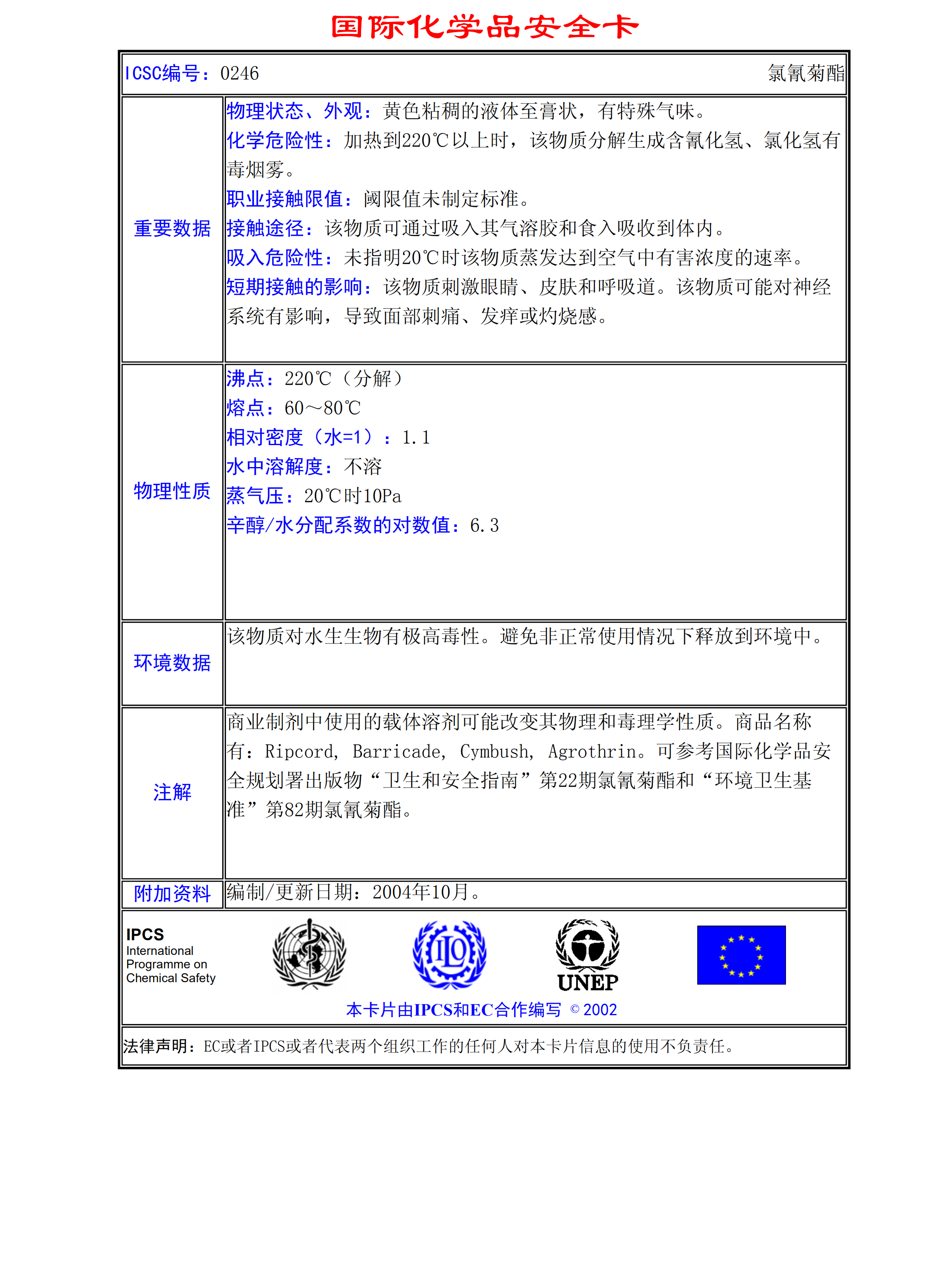 氯氰菊酯MSDS