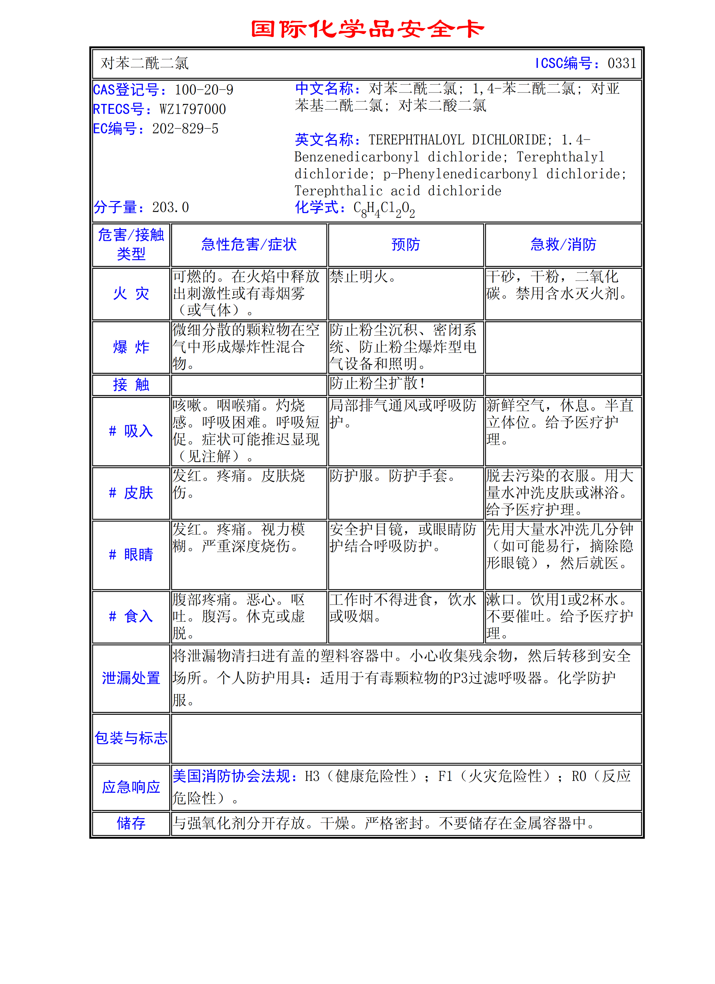 對苯二酰二氯MSDS