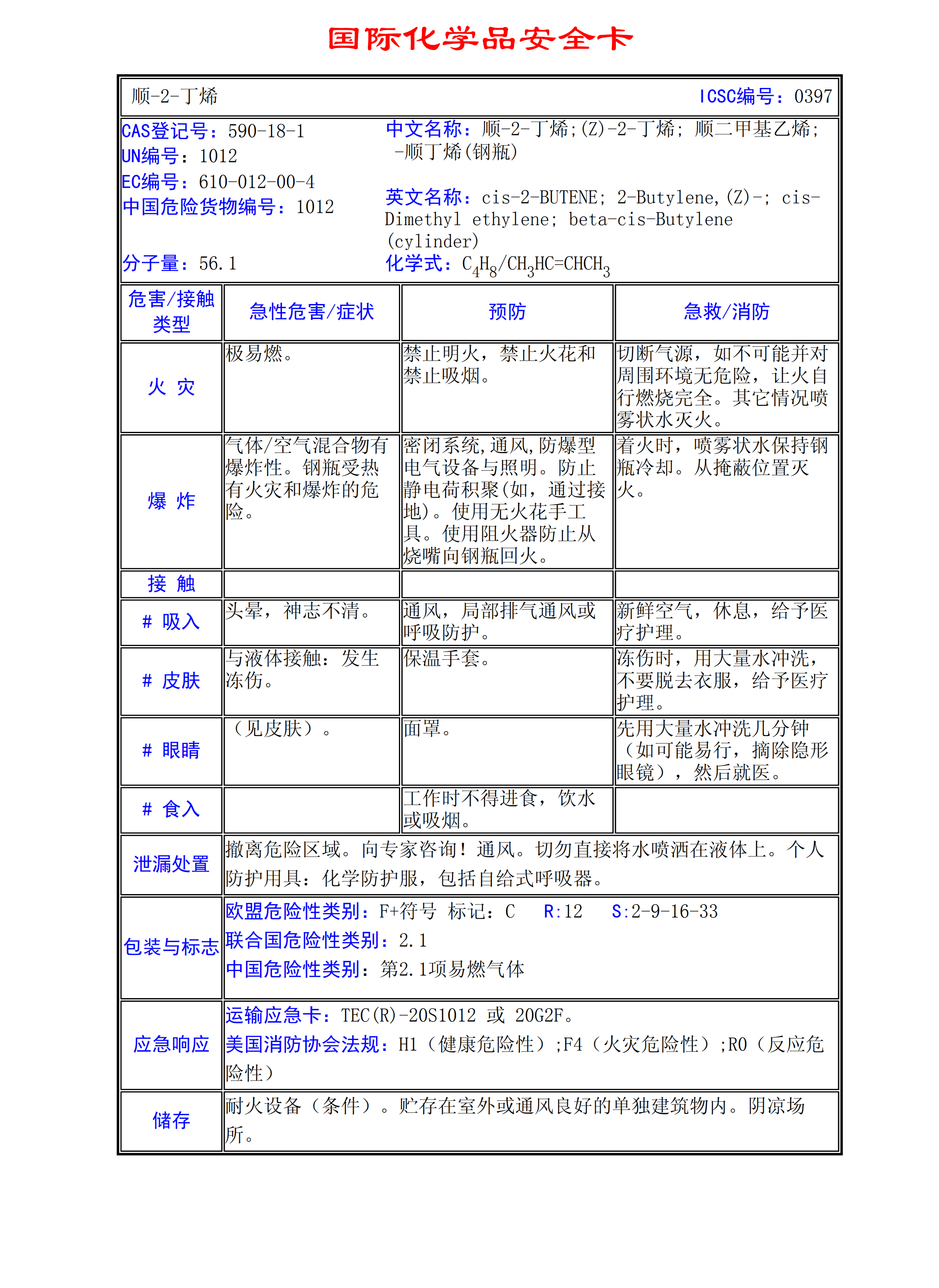 順-2-丁烯MSDS
