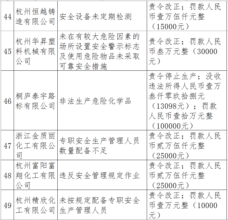 近日,杭州市應急管理局對50多家被行政處罰的企業(yè)(個人)進行曝光