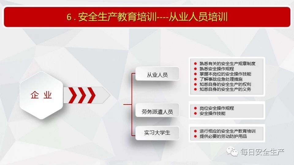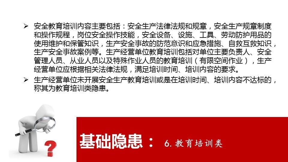 5 | 未按照規(guī)定對從業(yè)人員、被派遣勞動者、實習學生進行安全生產教育和培訓,或者未按照規(guī)定如實告知有關的安全生產事項的 |