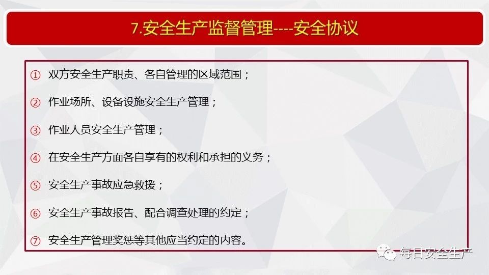 27 | 生產經營單位未與承包單位、承租單位簽訂專門的安全生產管理協(xié)議或者未在承包合同、租賃合同中明確各自的安全生產管理職責,或者未對承包單位、承租單位的安全生產統(tǒng)一協(xié)調、管理的 |