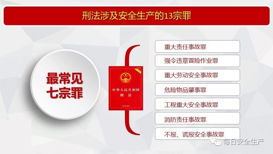 13 | 礦山、金屬冶煉建設項目或者用于生產、儲存危險物品的建設項目竣工投入生產或者使用前,安全設施未經驗收合格的 |