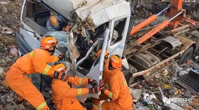 消防救援人員通過(guò)電話詢(xún)問(wèn)現(xiàn)場(chǎng)報(bào)警人了解到,該垃圾車(chē)在卸載垃圾時(shí)抬升過(guò)高,導(dǎo)致滑入垃圾池內(nèi)側(cè)翻,有1名人員被困。